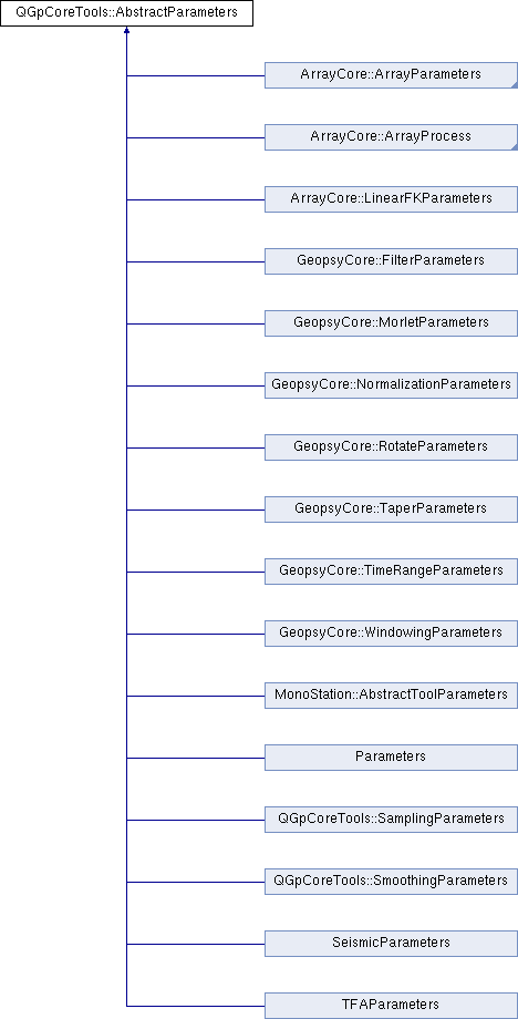 Reimplemented in GeopsyCore::WindowingParameters, ArrayCore::LinearFKParameters, MonoStation::AbstractToolParameters, GeopsyCore::TimeRangeParameters, GeopsyCore::FilterParameters, QGpCoreTools::SamplingParameters, ArrayCore::FKParameters, ArrayCore::ArrayParameters, GeopsyCore::TaperParameters, ArrayCore::SPACParameters, GeopsyCore::NormalizationParameters, Parameters, QGpCoreTools::SmoothingParameters, GeopsyCore::MorletParameters, TFAParameters, and ArrayCore::HRFKParameters.