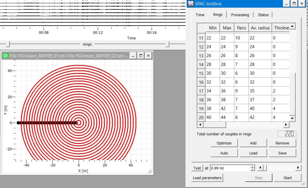 In the case of a passive linear array with 24 geophones, 2m spacing, as soon as I activate the Spac button, the image with 20 rings appears without having to activate the Auto option.