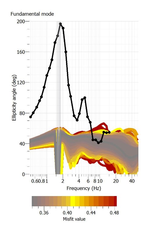 After your answer I uploaded an ellipticity file calculated by HVTFA as you can see from the attached images. In the first figure the second column of the parser shows the amplitude (atang) of the ellipticity and the corresponding graph. I have associated the ellipticity curves picture of the inversion expressed in the degree scale.