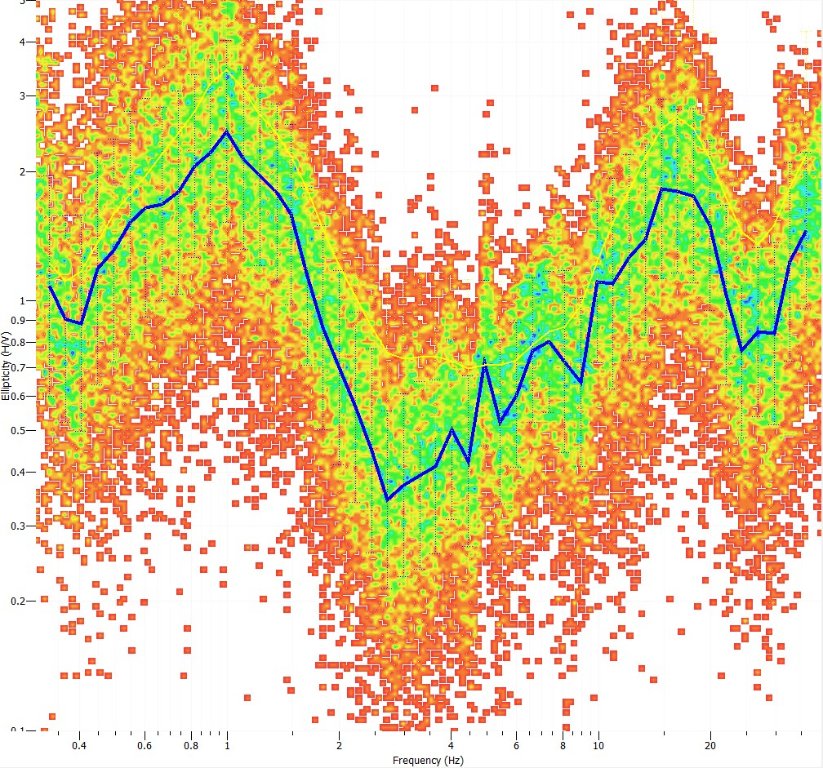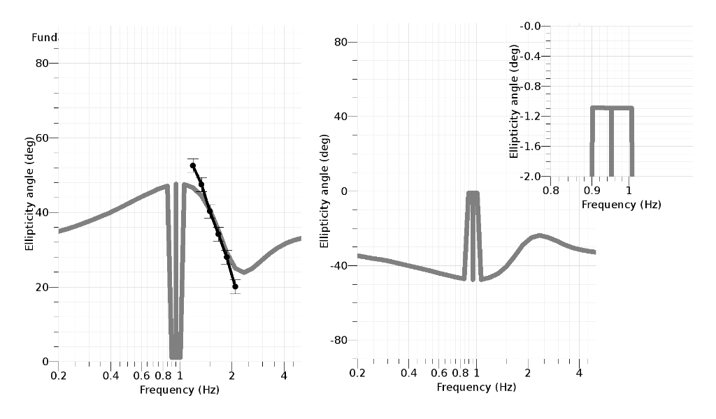 - There is effectively a small peak in the ellipticity at 1 Hz but there is another one much larger between 0.3 and 0.6 Hz. Is it supported by your experimental data?
