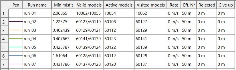 ** Warning ** : probably a missing peak, bad initial samplingI could see that you generated 300 models using Monte-Carlo before starting NA. This is not really useful and only a few is necessary. I'm used to 50 random models to initiate the inversion process.