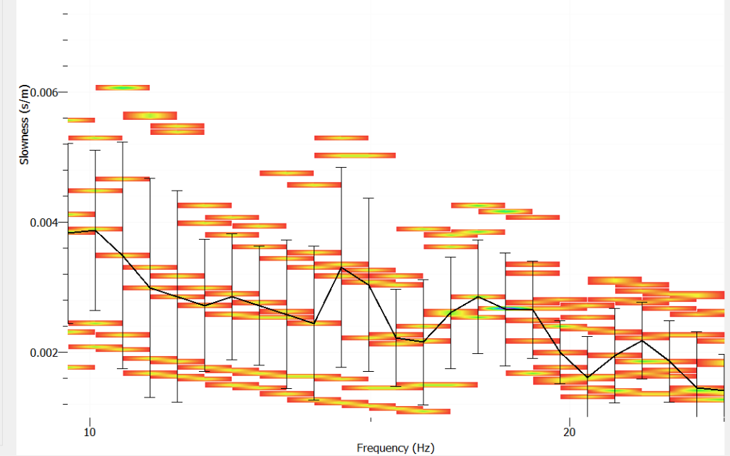 When i try to process it with "Linear F-K for passive experiments" the curves i obtain are not reasonable. I have decreasing slowness with frequency (and this has happened to me with every linear passive dataset i tried) . Is there a special way to process this type of data ?