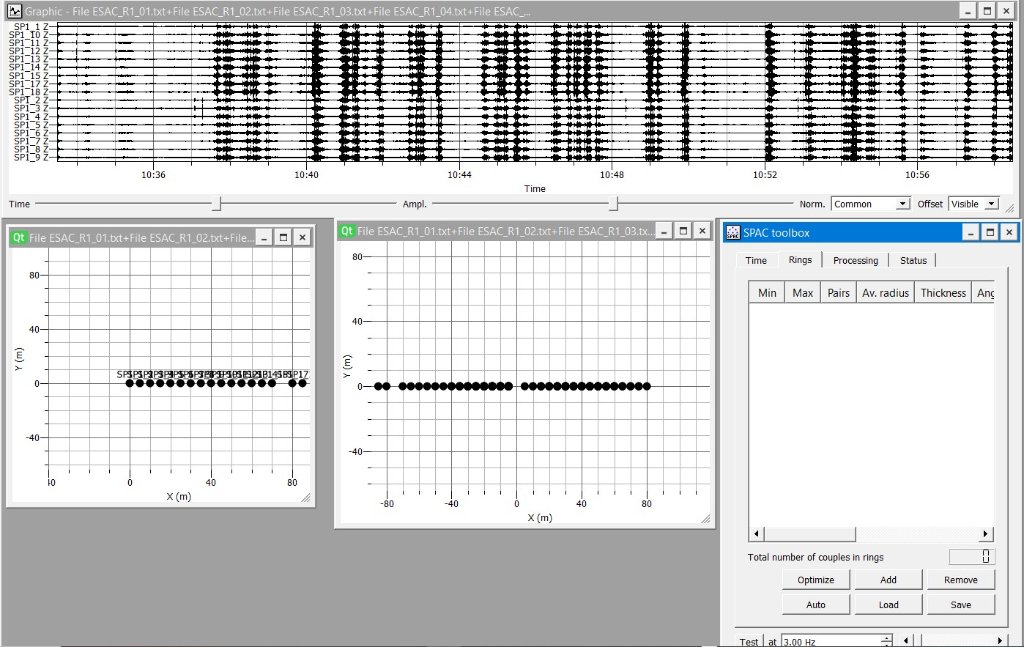The array is made up of 18 stations spaced by 5m, acquisition time 25 minutes (station 16 was cut because of bad quality).