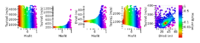Under menu ''View'', option ''[[Dinver::Parameter space display|Parameter space]]'' displays various 2D projections of the models. The default plots are parameter versus misfit values. Existing plots can be customized or new plots can be inserted.