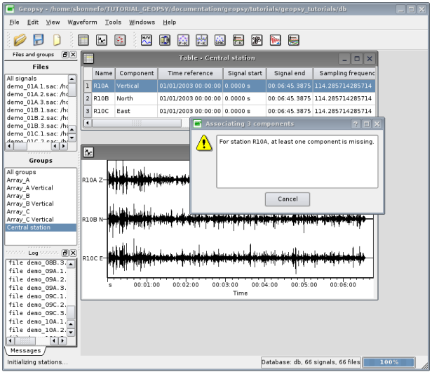 If, for a given signal, the station name are not the same for each component, then an on-screen error message appears (see Figure 3). In this case check and correct the station name.