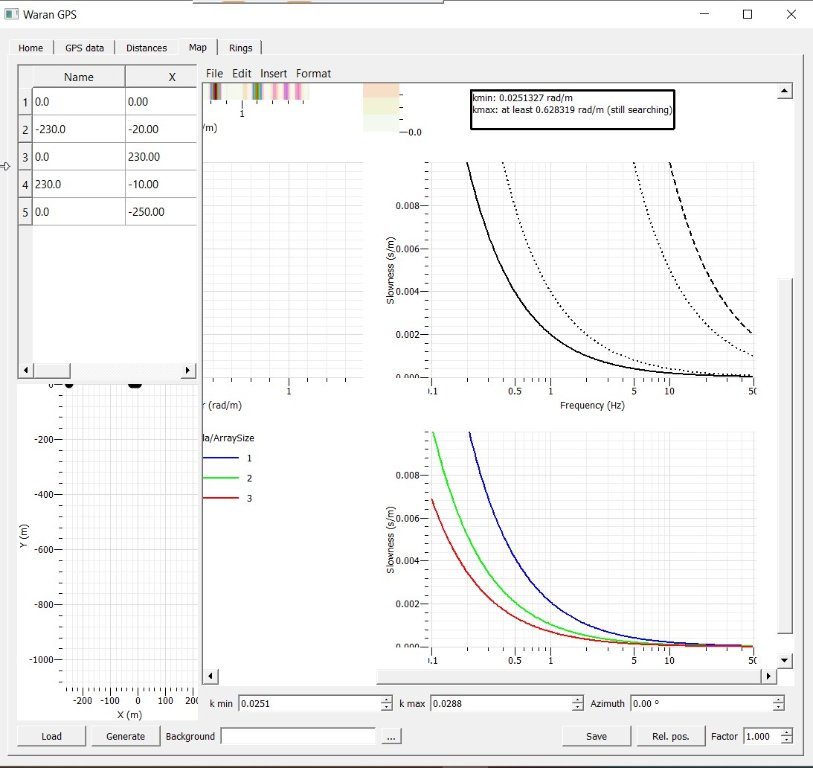 I did it and I send you the image of the dispersion curves, station coordinates and the values ​​of kmin and kmx.
