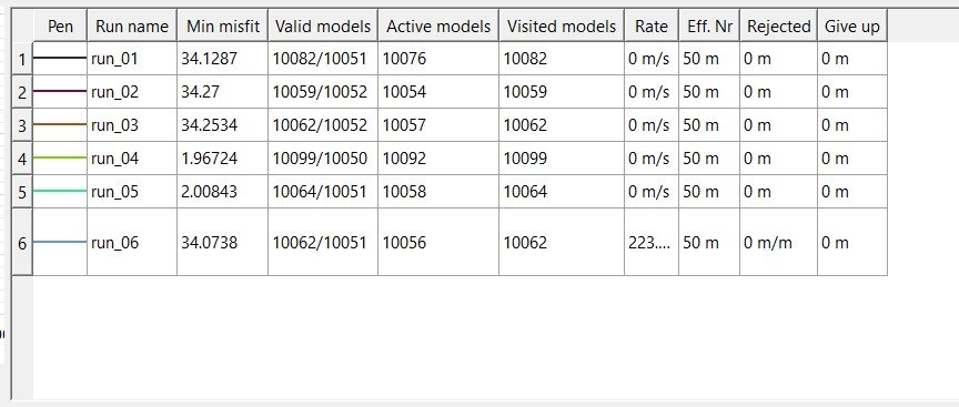 The anomalous thing is that the next run, without changing anything at all, the misfit returns exaggerated. In the fourth image I represented the misfit of a sequence of runs from which it is appreciated how the outputs are unreliable and the correct solution is absolutely random and not repeatable with the next run.