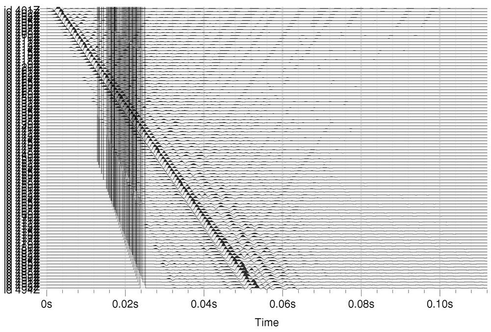 When I loaded my SEGY files in geopsy graphic window, some traces look perfectly fine while others have spikes present at the beginning of the time series. However, these time series look normal (i.e. no spikes present) when I checked these time series in matlab or other seismic data viewers. I posted an overall view of the graphic window with spikes and a zoom-in view of one of the traces what has a spike. Could anyone give me some suggestions on what might've caused such problems and how to fix it?