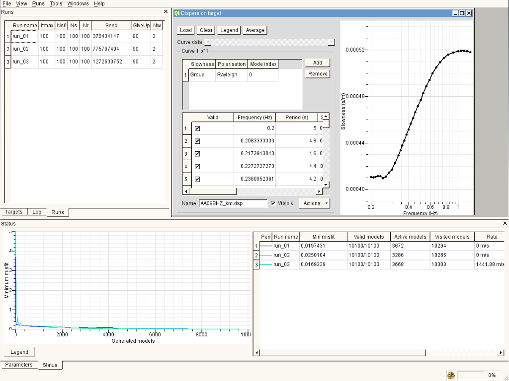 Sometimes I get a different misfit between runs with the same settings, for example a misfit of 0.07 on one run, then 0.01 on another. I guess this is to do with the random seed? The run with the 0.01 misfit gives a good fit to the dispersion curve, though sometimes I cannot get this low misfit every time I perform a run. Is there a way to make it more consistent? tuning the neighbourhood parameters, Itmax, Ns0, Ns, and Nr? At the moment I'm using Itmax=200, Ns0=100, Ns=100, Nr=50.