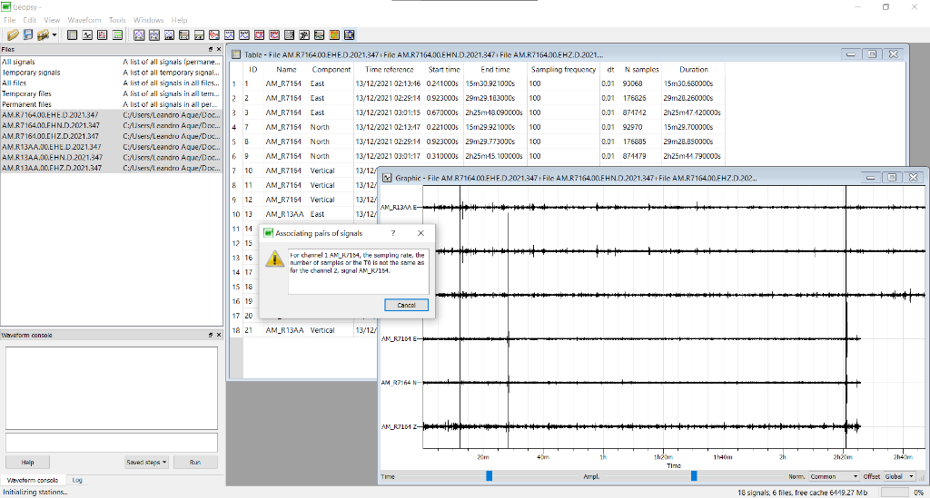 I am trying to process miniSEED data on 3rd floor relative to ground floor to obtain building period. However, an error shows up saying "Associating pairs of signals". I hope you can see the image i attached.